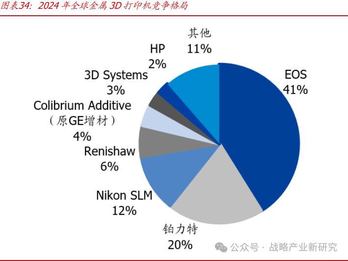 国内头部厂商包括铂力特、华曙高科等,根据 WOHLERS 最新数据,2024 年铂力特在全球金属 3D 打印机领域市占率提升至 20%,位列第二。
